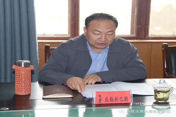329日下午,旗委党史学习教育第三巡回指导组到雅盐化集团公司指导党史学习教育工作并召开工作会议。旗委党史学习教育第三巡回指导组组长、旗人大常委会党组副书记、副主任庆格勒巴图,旗人大常委会财经委主任赵俊国,旗自然资源局干部张海龙和集团公司中层及以上党员干部参加工作会。集团公司党委书记、集团公司党史学习教育领导小组组长孙刚德主持会议。
